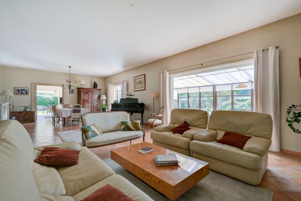 IBS - VILLA FAMILIALE - CALME ABSOLUIBS - VILLA FAMILIALE - CALME ABSOLU. Uniquement proposée par votre agence Aix-en-Provence - Sotheby's International Realty, cette propriété d'exception située à Bouc-Bel-Air conjugue avec raffinement confort, volumes et cadre de vie privilégié. Édifiée en 2000 sur un magnifique terrain paysagé de 4 000 m², cette villa familiale déploie environ 400 m² de surface totale, subtilement répartis sur deux niveaux aux volumes généreux. La partie principale d’environ 240 m² s’ouvre sur une élégante entrée menant à une pièce de vie lumineuse prolongée par une véranda à l’atmosphère apaisante, une cuisine familiale avec arrière-cuisine, cinq chambres, dont une suite parentale, deux salles de bains, un bureau et des toilettes invités. Energy and climate performance Estimated amount of annual energy expenditure for standard use: between 1150€ and 1600€ (ref : 2021, 2022, 2023)             |