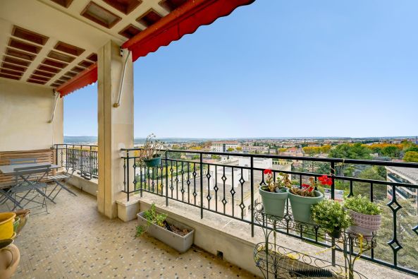 Perched on the 9th floor of a 10-story building with elevator and reversible air conditioning, it offers an unobstructed panoramic view over the city and Mount Sainte-Victoire, while enjoying complete peace and quiet.